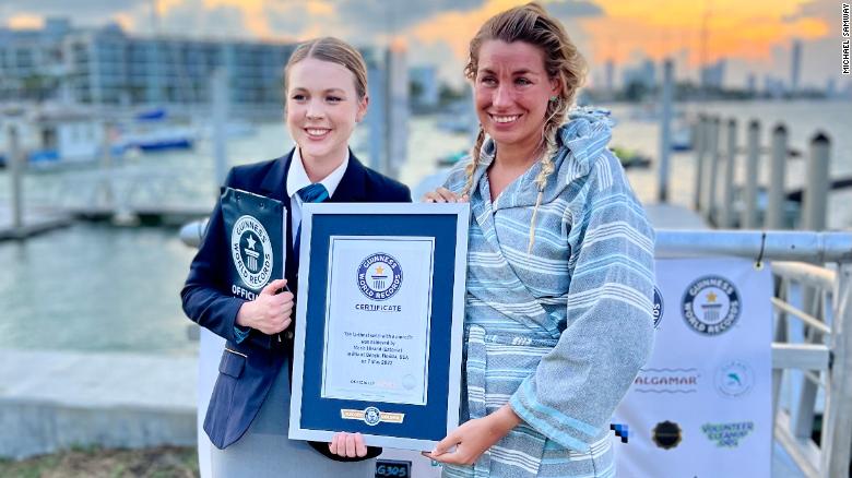 Woman sets record swimming 26.22 miles in a mermaid fin